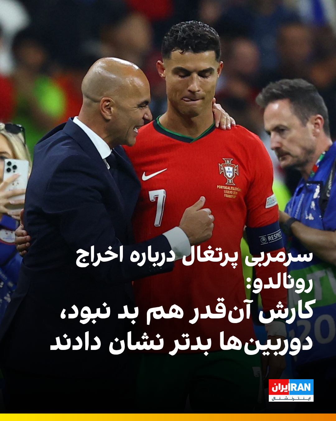 روبرتو مارتینز، سرمربی تیم ملی پرتغال پس از باخت به ایرلند، درباره اخراج کریستیانو رونالدو گفت: «روز سختی بود. او برای تیم اهمیت قائل است، مدت زیادی تحت فشار بود و وقتی سعی کرد از بازیکن دور شود، کاری انجام داد که فکر میکنم آنقدر هم بد نبود، دوربینها آن را بدتر نشان دادند.»
