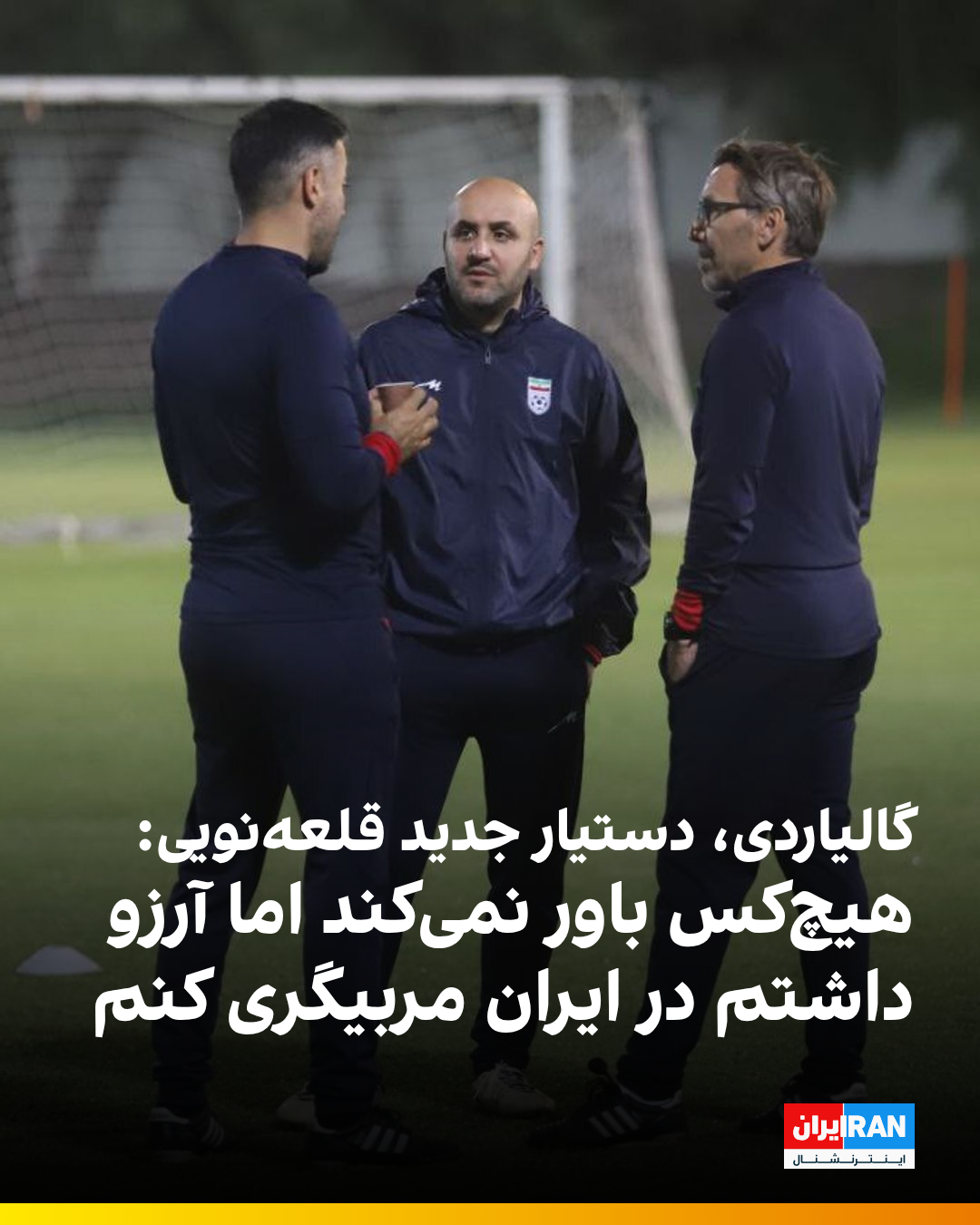 آنتونیو گالیاردی، مربی جدید تیم ملی فوتبال، در گفتوگو با گاتزتا دلو اسپورت، درباره حضور در ایران و پیوستن به کادر فنی تیم ملی فوتبال، گفت: «یک چیز هست که هیچکس باور نمیکند، اما باز هم میگویم. دوستانم میدانند که در زندگی دو آرزو داشتم: مربیگری ژاپن و مربیگری ایران.»