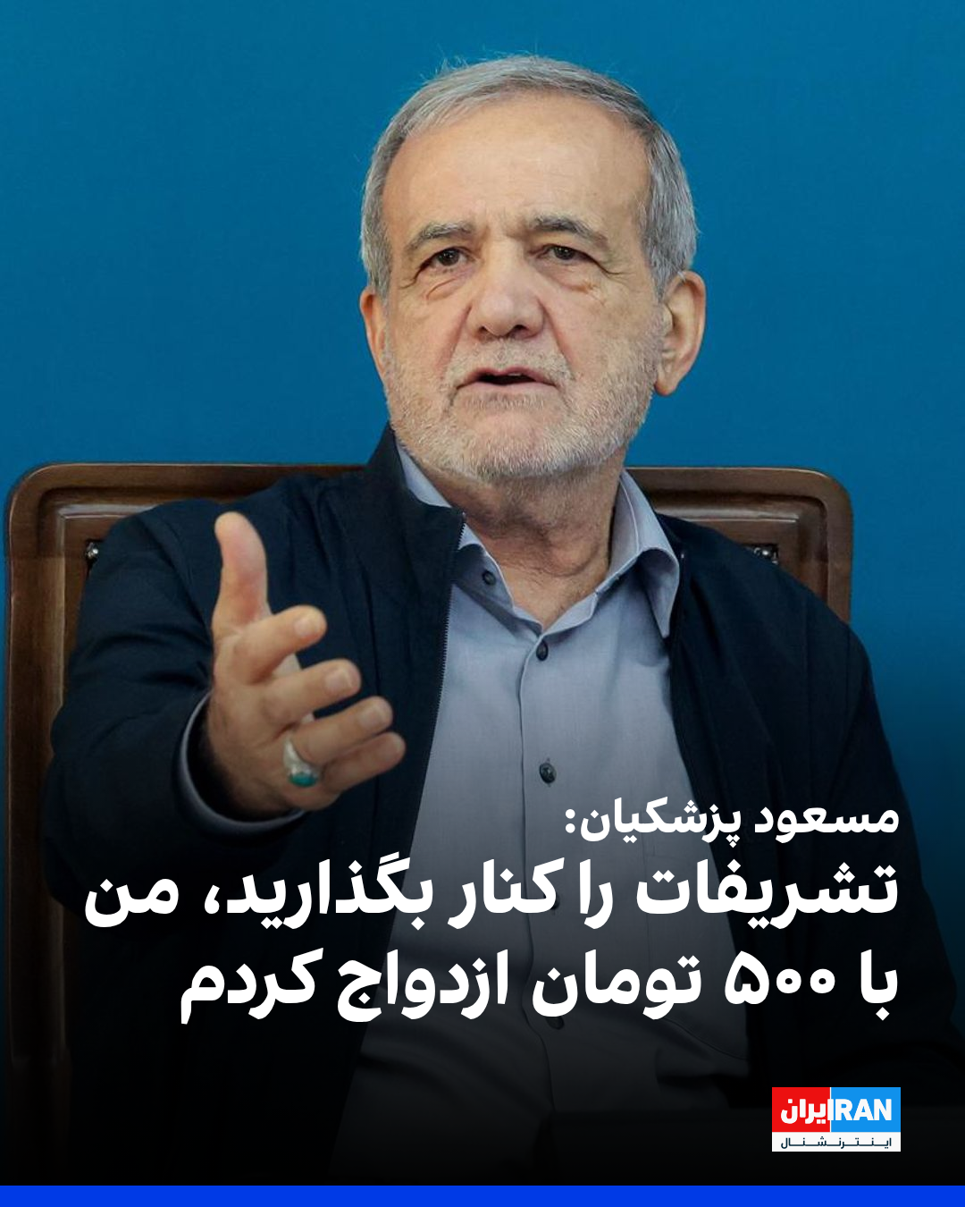 مسعود پزشکیان، رييسجمهور جمهوری اسلامی، گفت برای داشتن زندگی آسان لازم است تشريفات کنار گذاشته شود و افزود که با «۵۰۰ تومان» ازدواج کرده و زندگی مشترک را در خوابگاه دانشجويی آغاز کرده است.