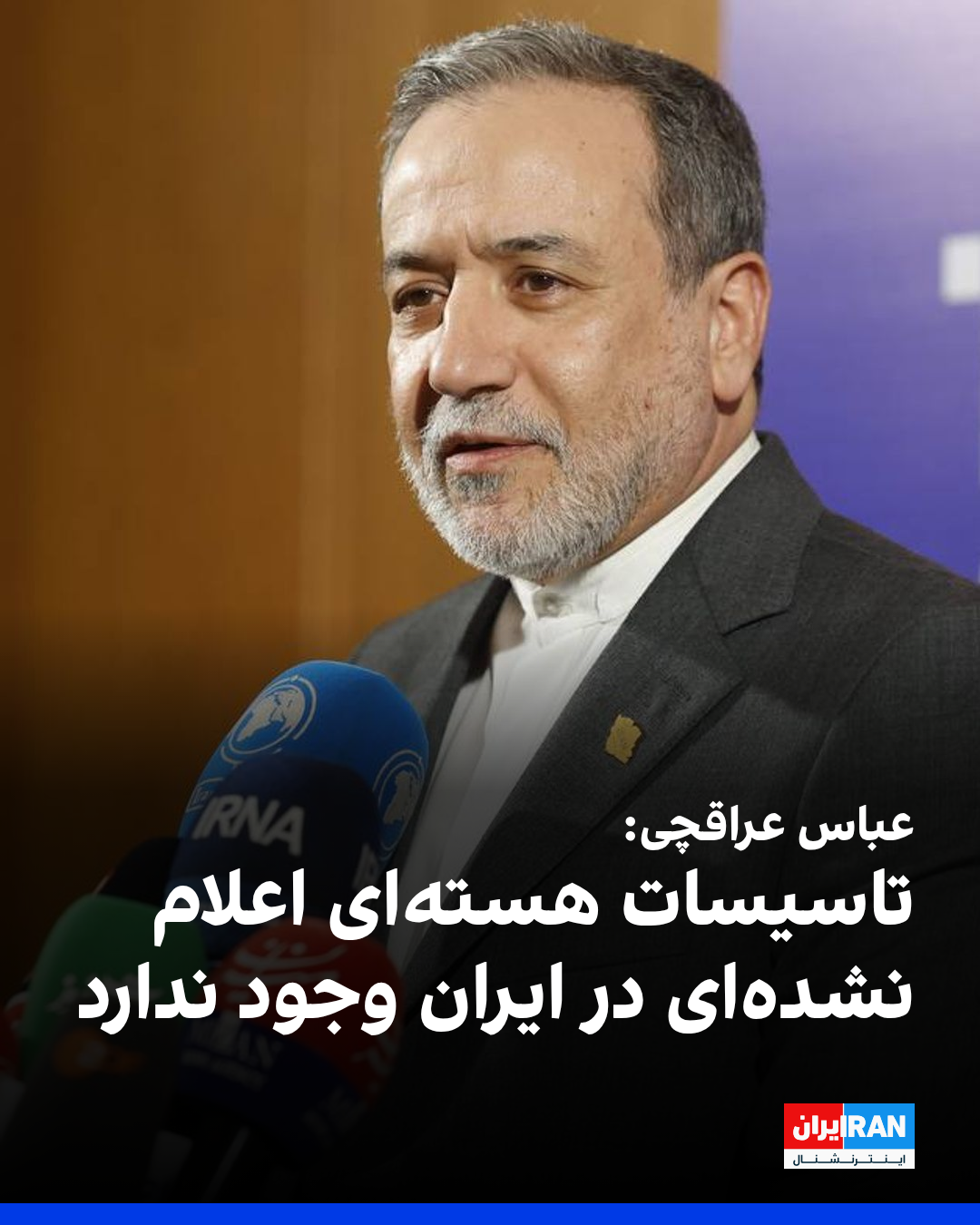 عباس عراقچی، وزیر خارجه جمهوری اسلامی گفت: «هیچ تاسیسات هستهای غنیسازی اعلام نشدهای در ایران وجود ندارد و تمام تاسیسات ما تحت نظارت آژانس انرژی اتمی هستند.»