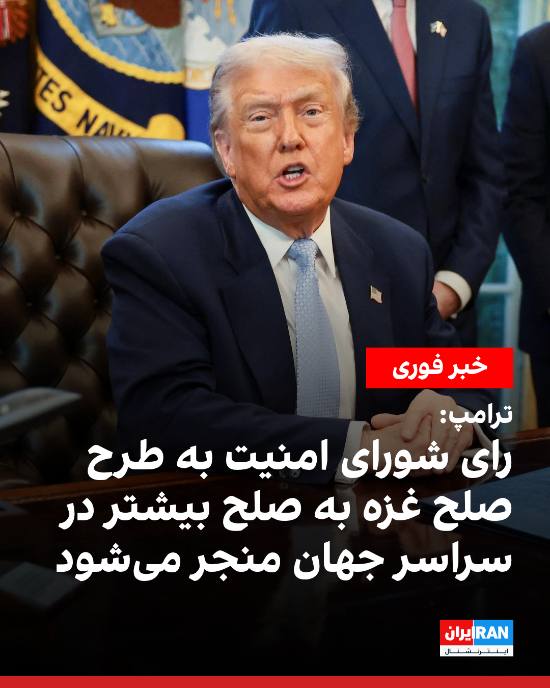 دونالد ترامپ، رییسجمهوری آمریکا، از حمایت شورای امنيت سازمان ملل از طرح صلحش برای غزه استقبال کرد و گفت این اقدام به صلح بيشتر در سراسر جهان منجر میشود.
