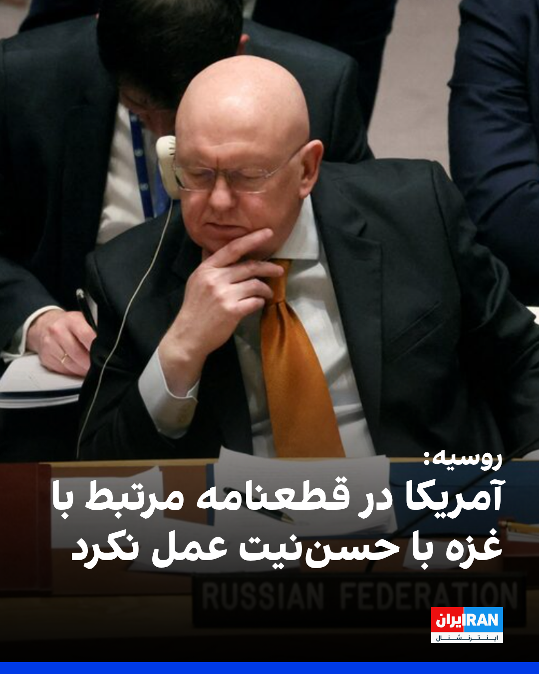 واسیلی نبنزیا، سفير روسيه در سازمان ملل، پس از رای ممتنع مسکو به قطعنامه آمریکا برای غزه درباره کنار گذاشته شدن فلسطينيان ابراز نگرانی کرد و آمریکا را متهم کرد «با حسننيت» عمل نکرده است.