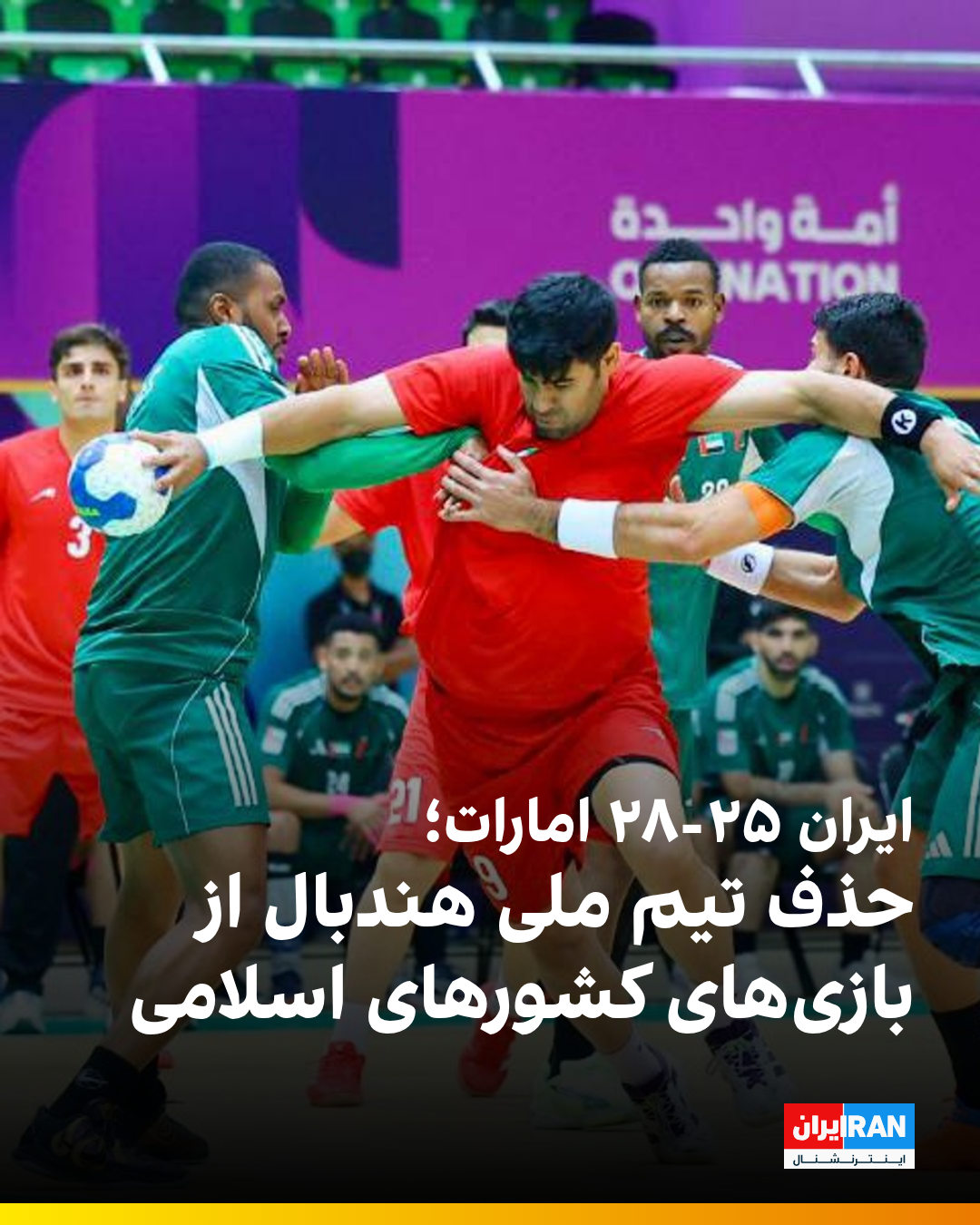 تیم ملی هندبال ایران در سومین مسابقه خود در مرحله گروهی بازیهای کشورهای اسلامی با نتیجه ۲۵-۲۸ برابر امارات شکست خورد و با قرار گرفتن در رده سوم گروه A، از صعود به نیمهنهایی باز ماند.