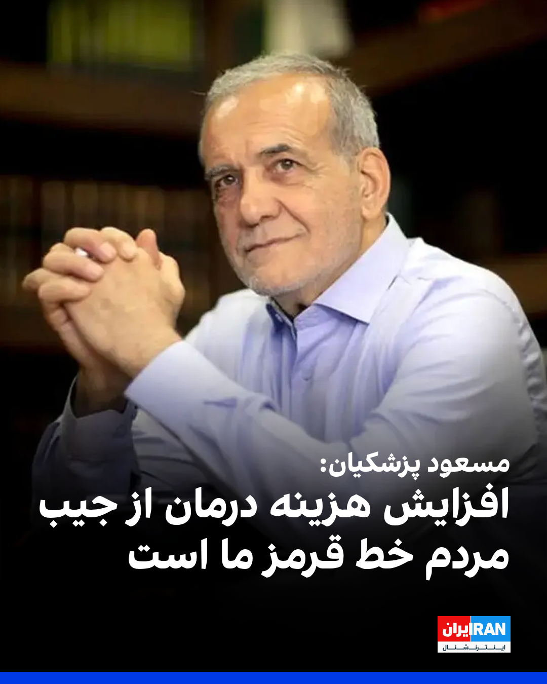 مسعود پزشکیان، رییس دولت جمهوری اسلامی، اعلام کرد که جلوگیری از افزایش سهم پرداختی مردم در حوزه سلامت «خط قرمز» دولت است. او در پیامی در شبکه اجتماعی ایکس تاکید کرد هزینههای درمان نباید از جیب مردم بیشتر شود.