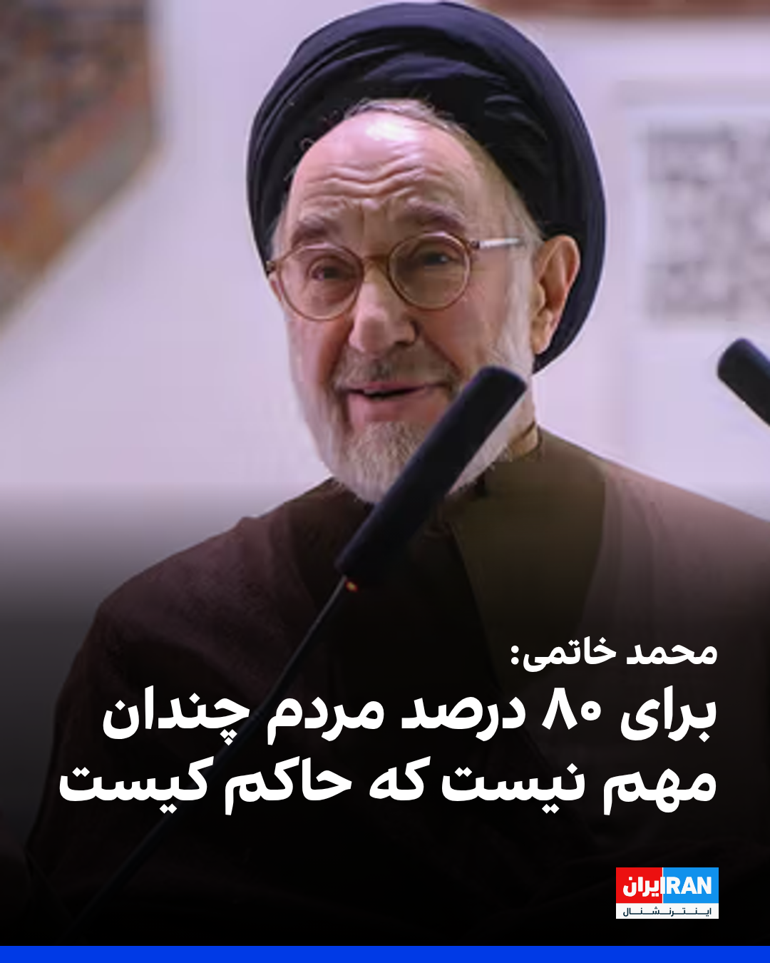محمد خاتمی، رییس سابق دولت در جمهوری اسلامی، با نادیده گرفتن نقش علی خامنهای، رهبر جمهوری اسلامی در وضعیت اقتصادی کنونی و بحرانها در ایران، گفت برای ۸۰ درصد مردم ایران چندان مهم نیست که «حاکم کیست و چگونه است».
