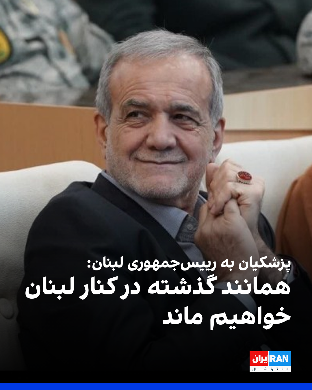 پزشکیان ضمن تاکید بر لزوم عقب نشینی نیروهای اسرائیل از اراضی لبنان خواستار «صحت و توفیق برای اون و رفاه و سعادت» برای ملت لبنان شد.