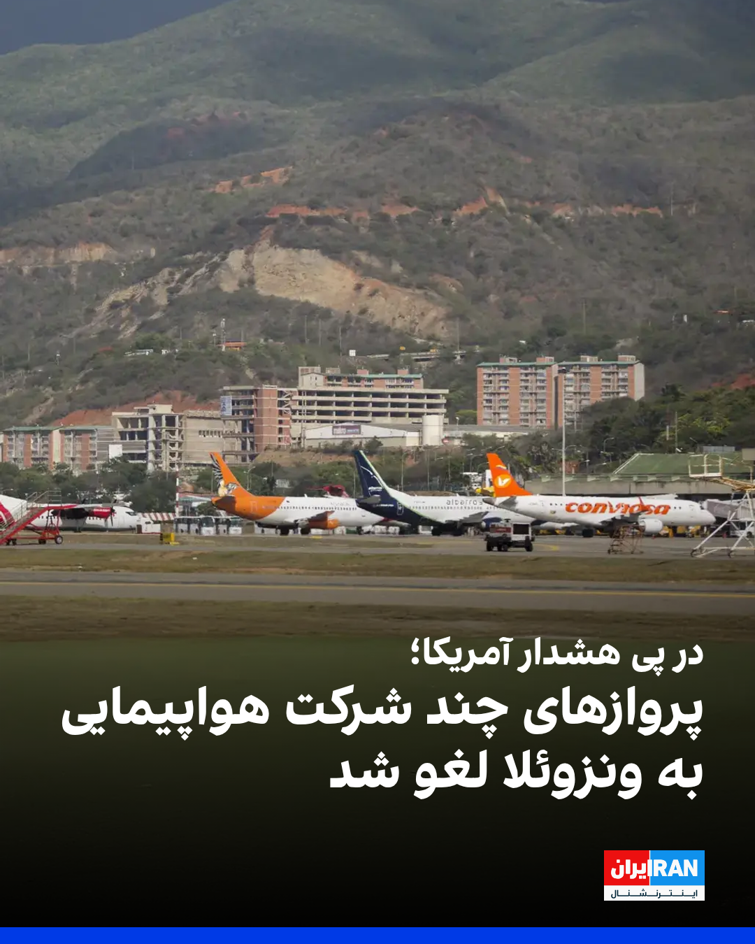 انجمن شرکتهای هواپیمایی ونزوئلا اعلام کرد شش شرکت هواپیمایی بینالمللی، از جمله شرکتهایی از کلمبیا، پرتغال و اسپانیا، پس از هشدار آمریکا درباره افزایش فعالیت نظامی، پروازهای خود به ونزوئلا را لغو کردند.