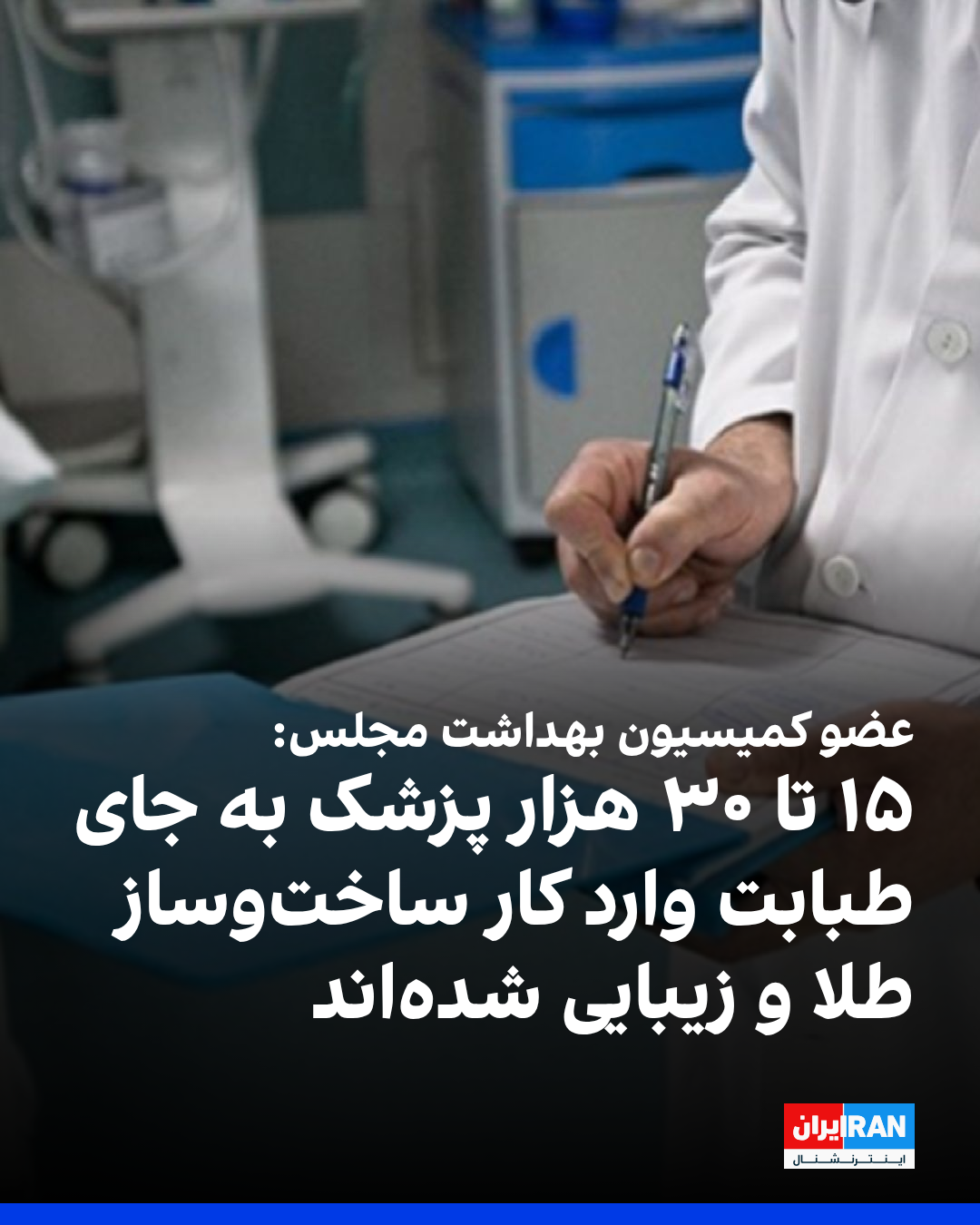 علیاصغر باقرزاده، عضو کمیسیون بهداشت مجلس گفت: «آمار قطعی نشان میدهد بیش از ۱۵ هزار پزشک و البته آماری غیررسمی تا ۳۰ هزار، به دلایلی چون مهاجرت یا انجام کسبوکارهای دیگر مانند طلا فروشی، ساخت و ساز، یا بیزینسهای زیبایی گم شده و به عبارت دیگر، وارد طبابت نمیشوند.»