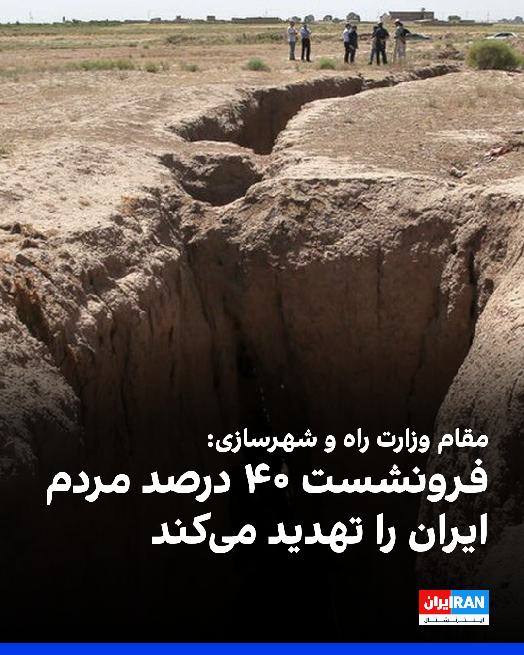 علی بیتاللهی، رییس بخش زلزلهشناسی مهندسی و خطرپذیری مرکز تحقیقات راه، مسکن و شهرسازی گفت: «پدیده فرونشست زمین بهصورت فزاینده در سراسر ایران در حال توسعه است و ۴۰ درصد مردم کشور را تهدید میکند.»
