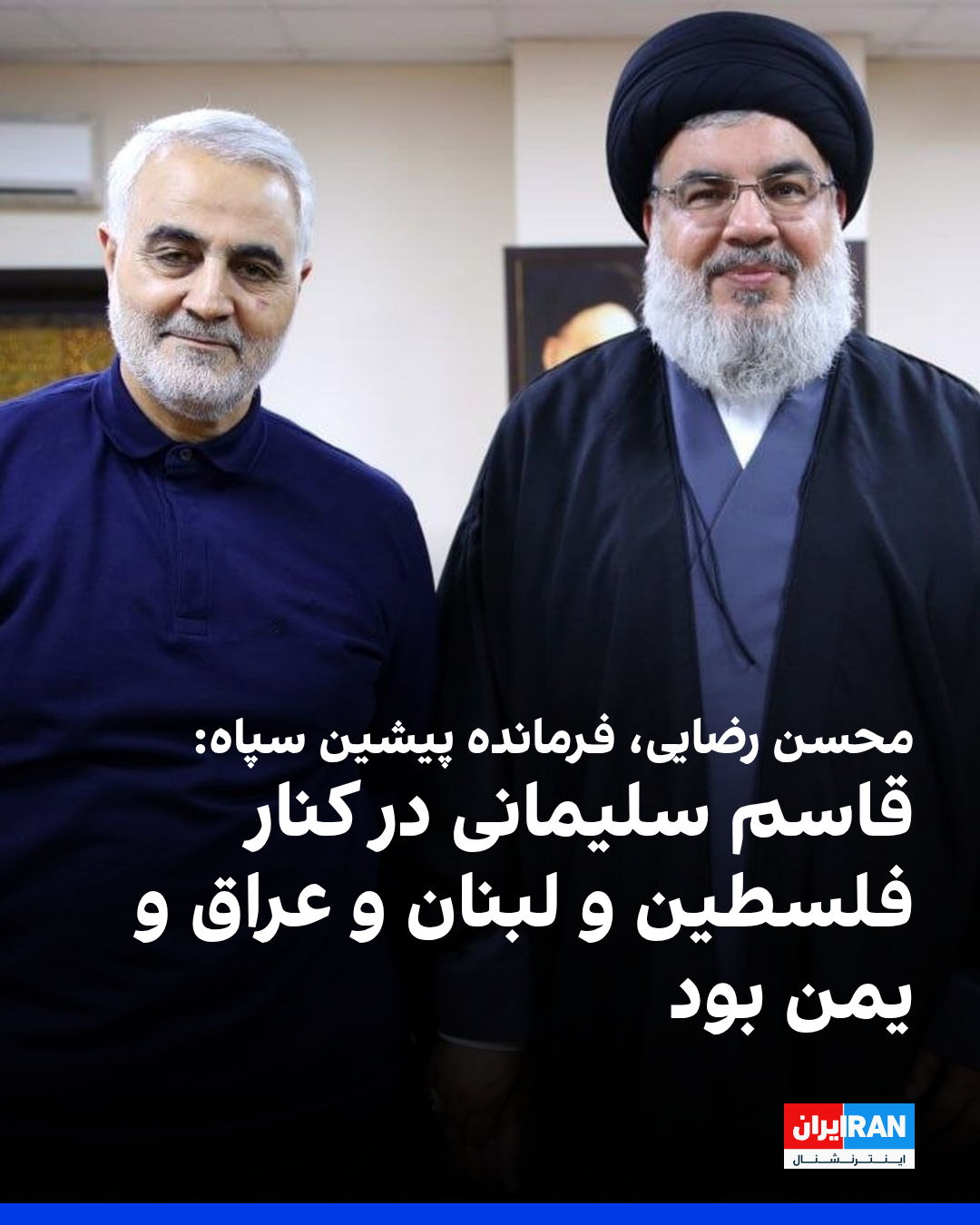 محسن رضایی، فرمانده پیشین سپاه و عضو مجمع تشخیص مصلحت نظام، گفت: «قاسم سلیمانی برای مردم فلسطین، لبنان، عراق، یمن، افغانستان و بوسنی پشتیبان بود و در سالهای آخر به کابوس آمریکا و اسرائیل تبدیل شده بود.»