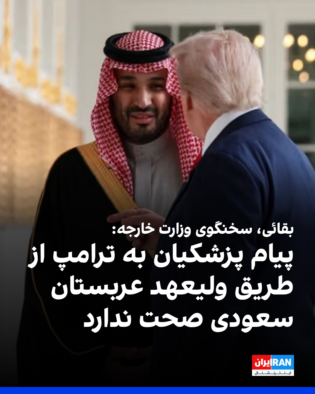 اسماعیل بقائی، سخنگوی وزارت خارجه جمهوری اسلامی بار دیگر گفت که محتوای نامه مسعود پزشکیان به ولیعهد عربستان سعودی یک مکاتبه کاملا معمول و منحصرا راجع به موضوع حج بوده و هیچ مطلبی راجع به مباحث مذاکراتی در این نامه وجود نداشته است. »
