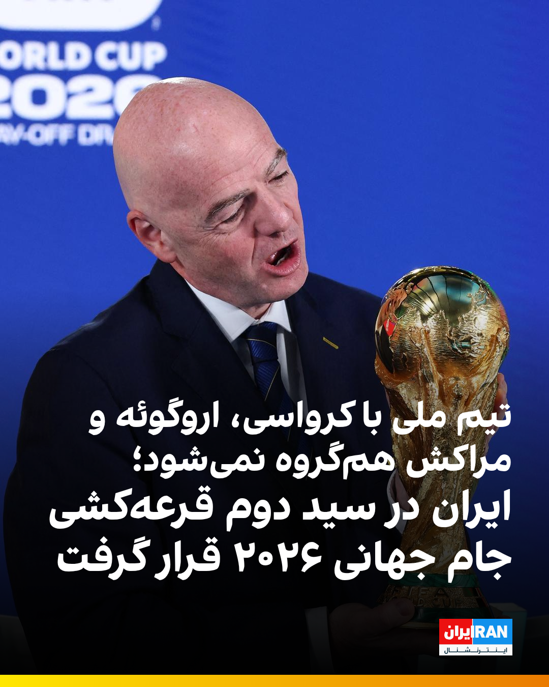 فیفا سیدبندی قرعهکشی جام جهانی ۲۰۲۶ را اعلام کرد که براساس آن تیم ملی فوتبال ایران در سید دوم این مسابقات قرار گرفت و با تیمهایی چون کرواسی، اروگوئه، مراکش، کلمبیا و سوئیس همگروه نمیشود.