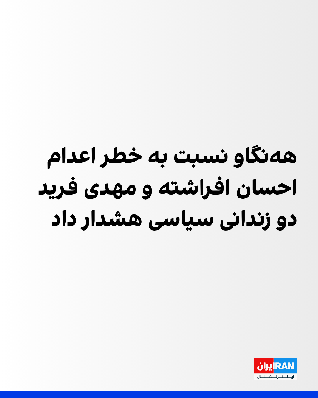 سازمان حقوقبشری ههنگاو نسبت به خطر اعدام احسان افراشته و مهدی فرید دو زندانی سیاسی هشدار داد.