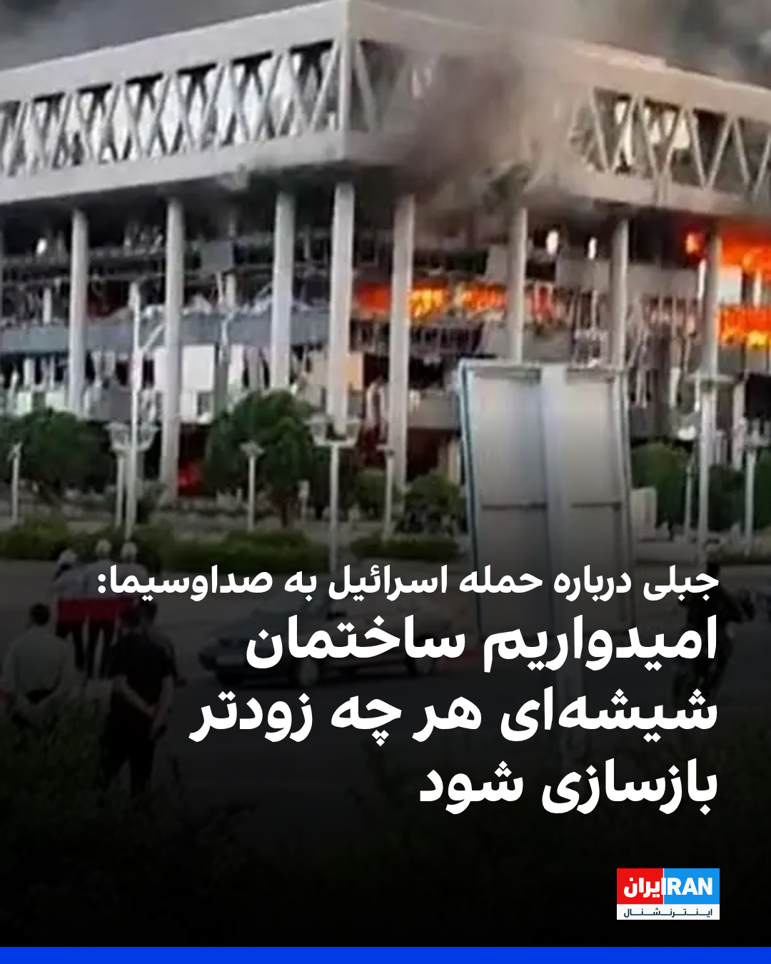 پیمان جبلی، رییس صداوسیمای جمهوری اسلامی، ابراز امیدواری کرد ساختمان شیشهای صداوسیما که در جنگ ۱۲ روزه از سوی اسرائیل هدف قرار گرفت، «هر چه زودتر بازسازی شود.»