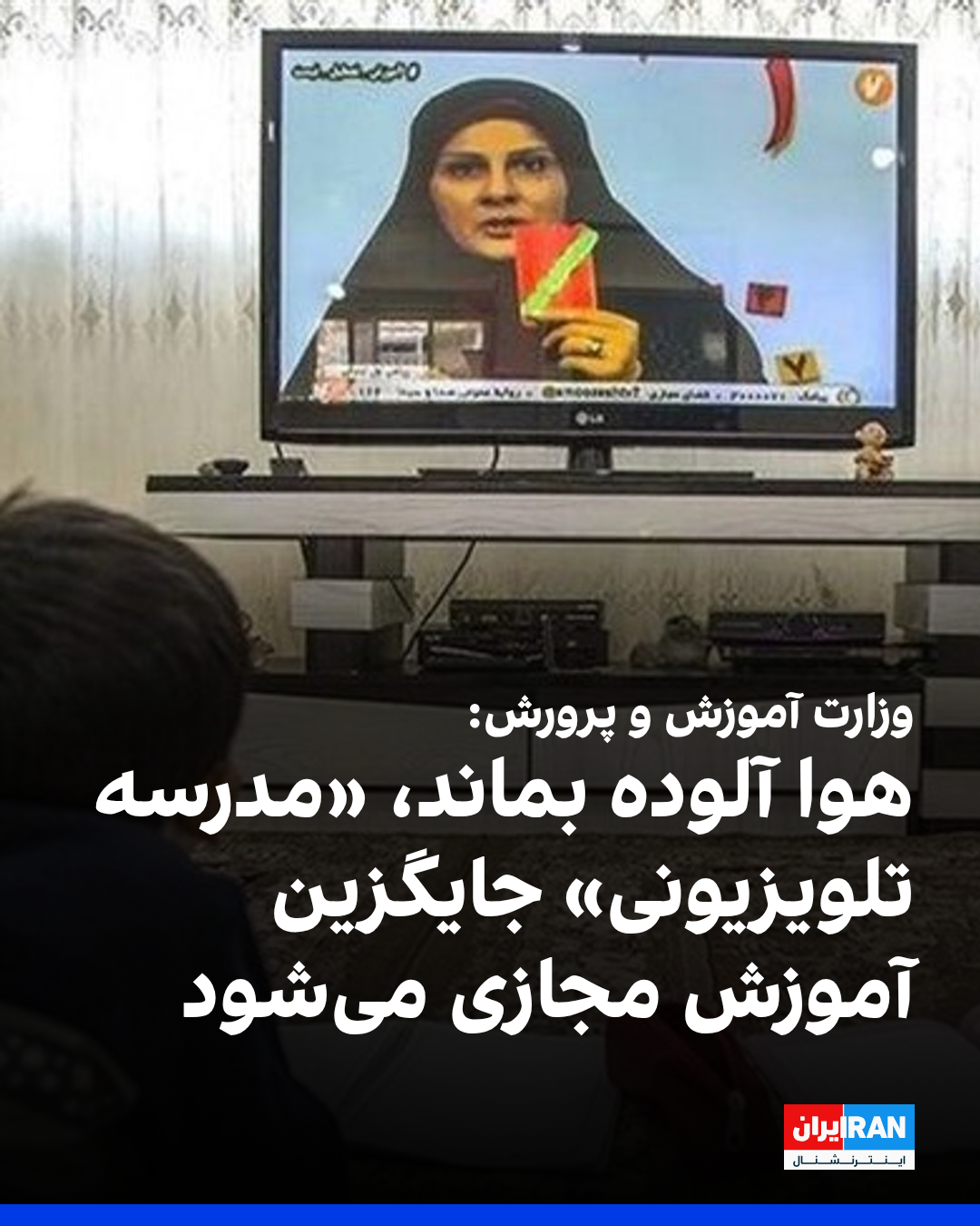 مدیرکل روابط عمومی وزارت آموزش و پرورش اعلام کرد در صورت تداوم آلودگی هوا و لزوم تعطیلی مدارس، «مدرسه تلویزیونی» جایگزین روشهای آموزش مجازی خواهد شد.