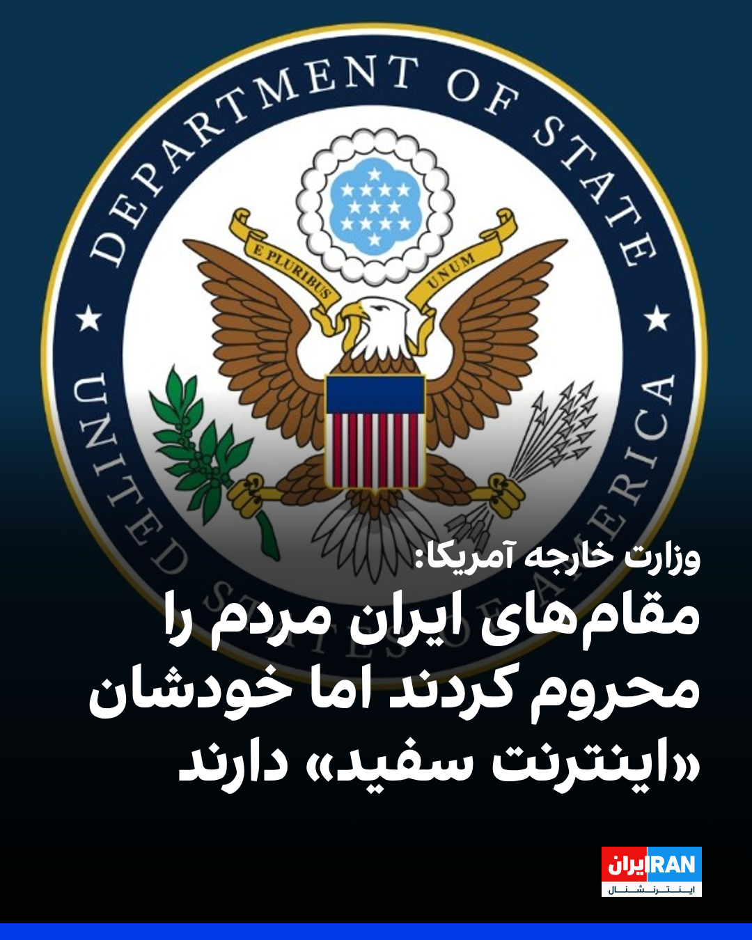 صفحه رسمی وزارت خارجه آمریکا افزود: «رژیم جمهوری اسلامی با این که برای مردم ایران محدودیت و سانسور شدید اعمال میکنند، همزمان به طور ریاکارانه دسترسی ویژهای به اینترنت برای مقامات رژیم خود فراهم میسازد.»