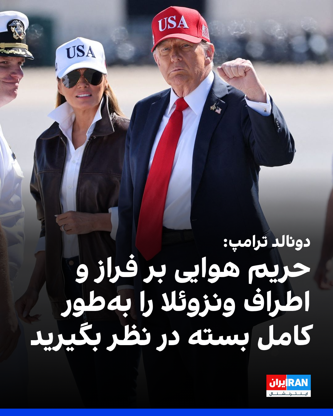 همزمان با شدت گرفتن تنشها میان واشینگتن و کاراکاس، دونالد ترامپ، رییسجمهوری آمریکا، اعلام کرد حریم هوایی بر فراز و پیرامون ونزوئلا «بهطور کامل» بسته شده است. در سوی دیگر، ونزوئلا اظهارات ترامپ را «خصمانه و خودسرانه» خواند.