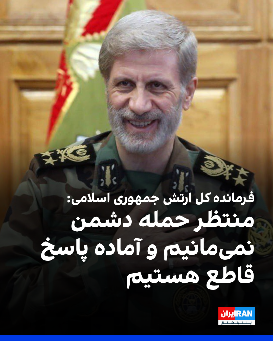 امیر حاتمی، فرمانده کل ارتش جمهوری اسلامی گفت: «ما نه تنها منتظر نخواهیم ماند تا دشمن حمله کند، بلکه آمادگی لازم برای هرگونه پاسخ قاطع و درهم شکننده را در هر نقطهای که منافع ملی ما ایجاب کند، داریم.»