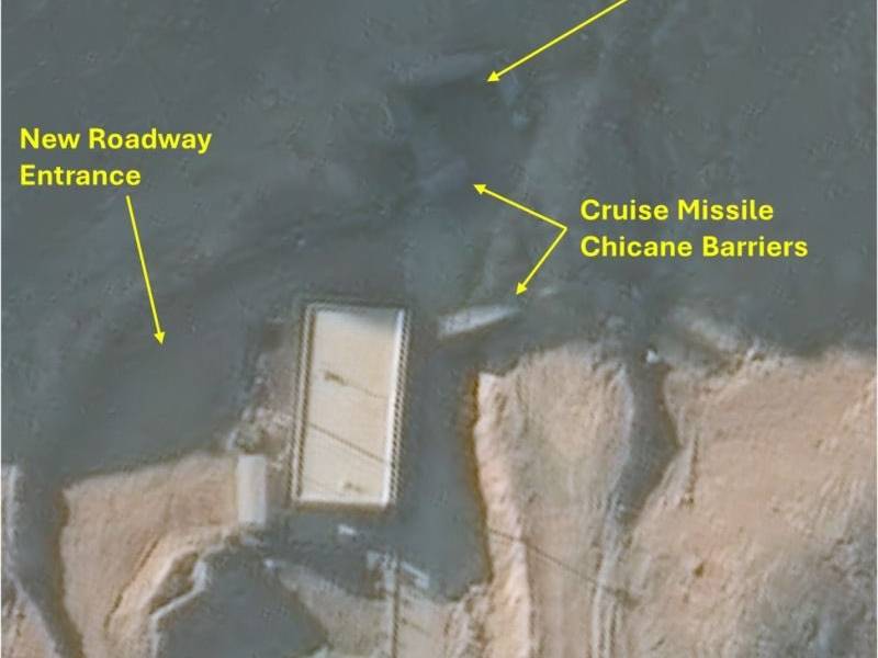 افزون بر این، جمهوری اسلامی اطراف ورودی شمالی نوعی «موانع گریزگاهی موشک کروز» نصب کرده است. هدف این موانع آن است که توانایی یک موشک کروز یا هر نوع موشک دیگر برای اصابت مستقیم به ورودی تونل را مختل کنند.