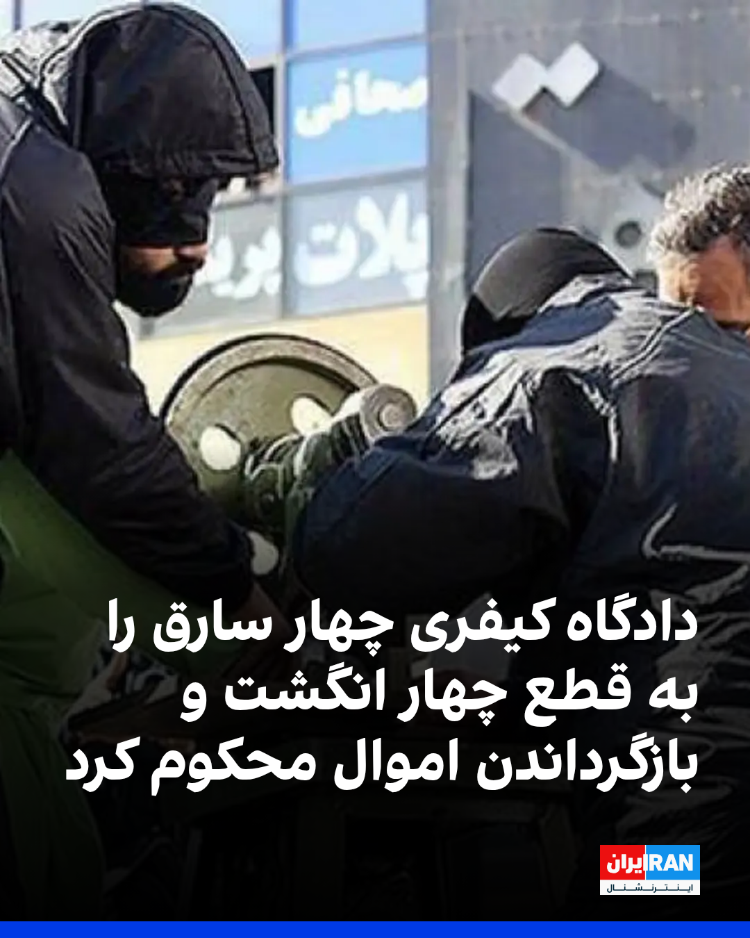 رسانههای ایران گزارش دادند که شعبه هشتم دادگاه کیفری یک تهران برای چهار عضو باند سرقت از خانههای شمال پایتخت، حکم قطع چهار انگشت دست راست و رد مال صادر کرده است.
