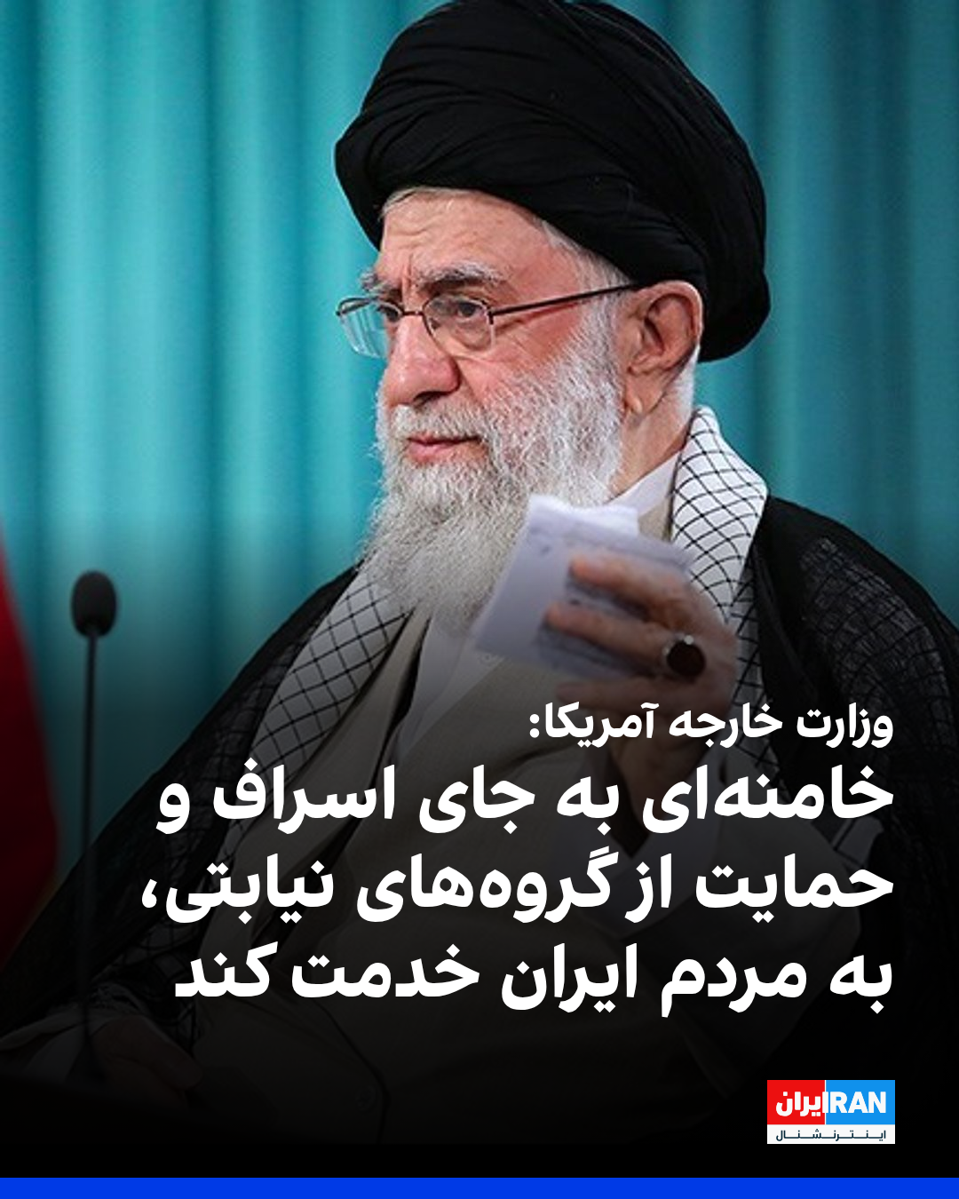 وزارت خارجه آمریکا همچنین در شبکه ایکس ادامه داد:« تامین مالی ترور در خارج و همزمان متهم کردن مردم عادی به اسراف، نشاندهنده اولویت واقعی رژیم است اگر خامنهای واقعا به اجتناب از اسراف اهمیت میدهد، بهتر است تمرکز خود را بر خدمت به مردم ایران بگذارد، نه دامن زدن به بیثباتی فراتر از مرزهای ایران.»