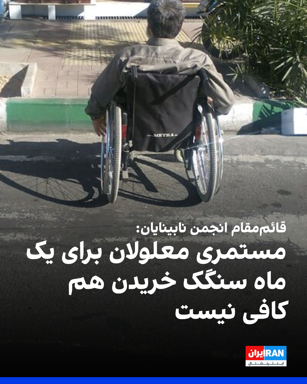 قائممقام انجمن نابینایان ایران با انتقاد از فقدان حمایت کافی دولت از این قشر گفت: «مستمری یک میلیون و چهارصدهزار تومانی معلولان کفاف حتی یک ماه نان سنگک را هم نمیدهد، در حالی که قانون ماده ٢٧ پرداخت حقوق به افراد دارای معلولیت شدید را الزامى کرده است.»