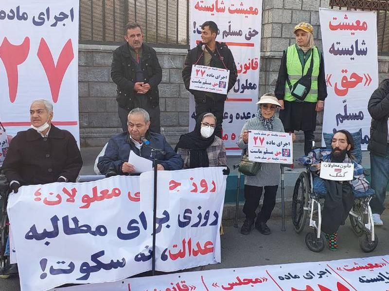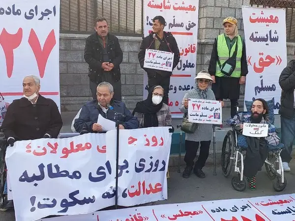 جمعی از افراد دارای معلولیت دوازدهم آذر در اعتراض به وضعیت معیشتی و اجرای ناقص قانون حمایت از معلولان مقابل مجلس شورای اسلامی تجمع کردند.