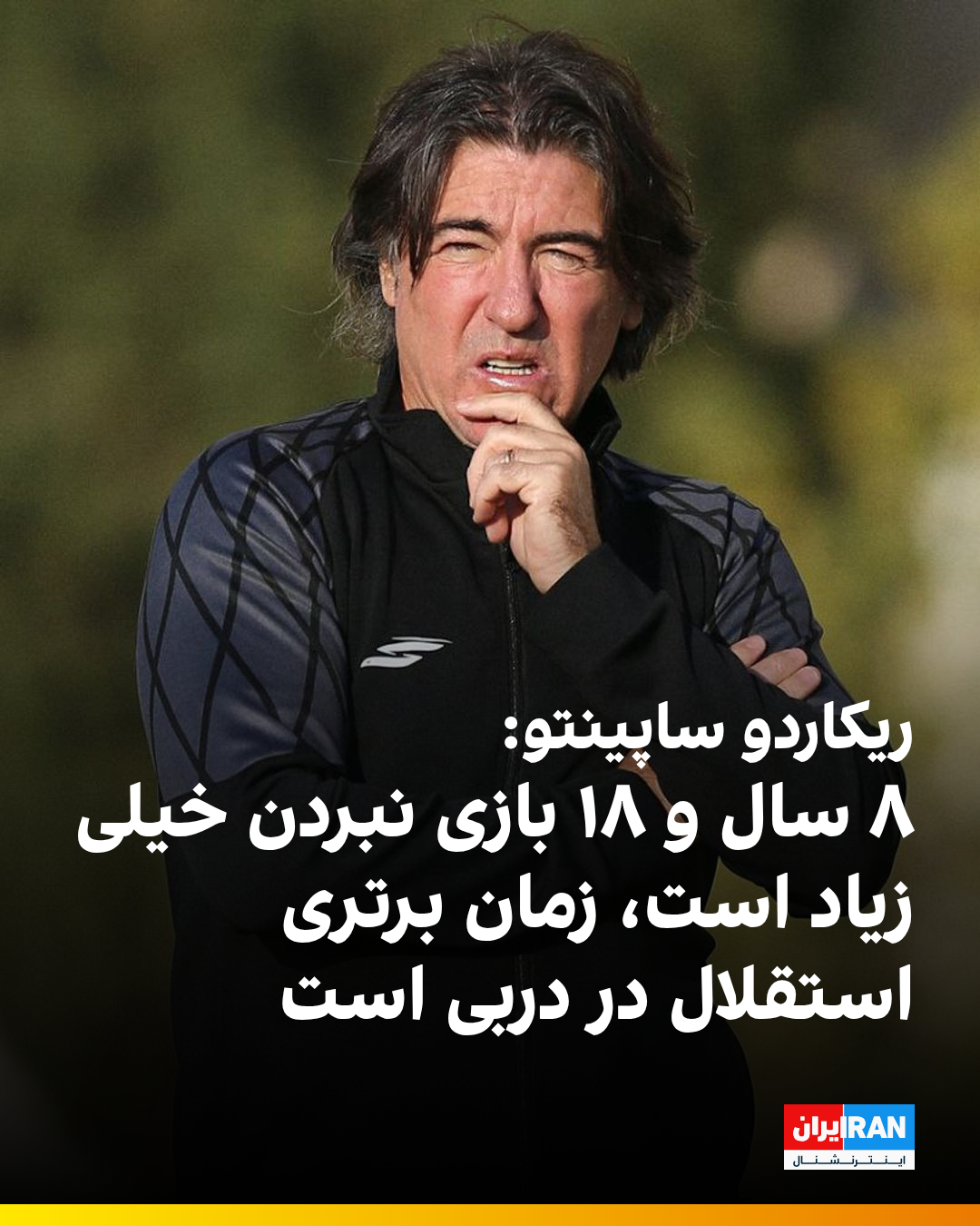 ریکاردو ساپینتو، سرمربی تیم فوتبال استقلال در نشست خبری پیش از بازی با پرسپولیس، با اشاره به روند ناکامی استقلال در دربیهای گذشته گفت: «هشت سال هست که در ۱۸ بازی نتوانستیم پیروز شویم. قطعاً زمان زیادی است و الان زمان آن رسیده که این بازی را ببریم.»