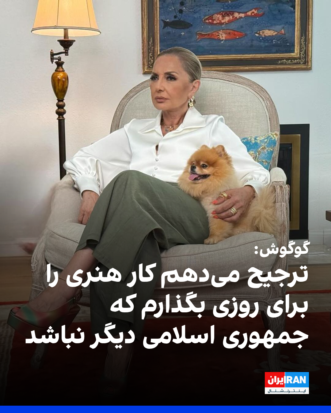 گوگوش، خواننده سرشناس ایرانی، با اشاره به احتمال ادامه فعالیتهای هنری پس از پایان تور خداحافظی خود گفت ترجیح میدهد بازگشت به صحنه و ادامه کار هنری را به زمانی موکول کند که جمهوری اسلامی دیگر در ایران بر سر کار نباشد.