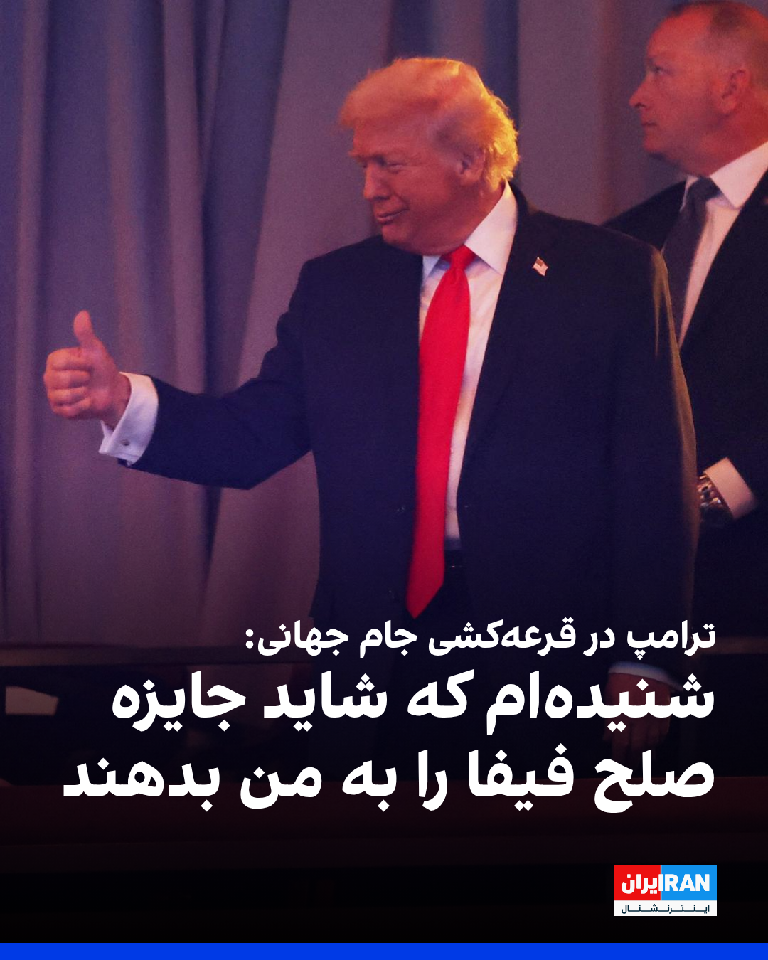 دونالد ترامپ، رییسجمهور آمریکا، در حاشیه مراسم قرعهکشی جام جهانی فوتبال ۲۰۲۶ درباره احتمال دریافت جایزه صلح فیفا گفت:«هنوز مشخص نیست که آیا این جایزه به من داده میشود یا نه. اما من به جایزه احتیاج ندارم.»