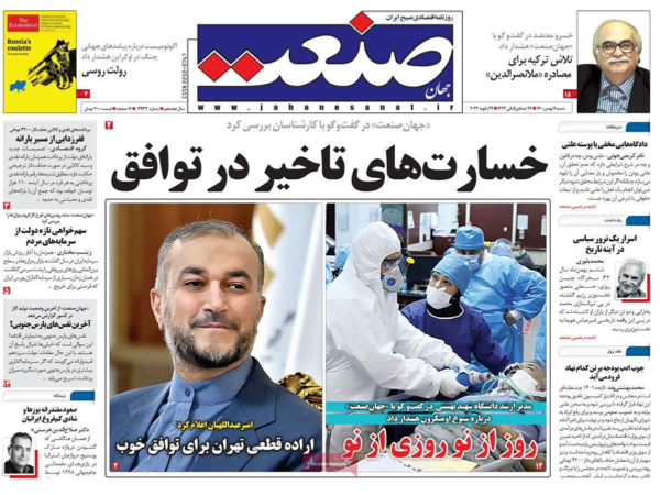 وتحدثت صحيفة "جهان صنعت" في عددها الصادر اليوم 29 يناير عن الخسائر والأضرار التي تتحملها إيران جراء التأخير في التوصل إلى اتفاق حول برنامجها النووي، وانتقدت عدم القيام بإجراء مفاوضات مباشرة مع الولايات المتحدة الأميركية لضمان الحصول على اتفاق في أسرع وقت ممكن.