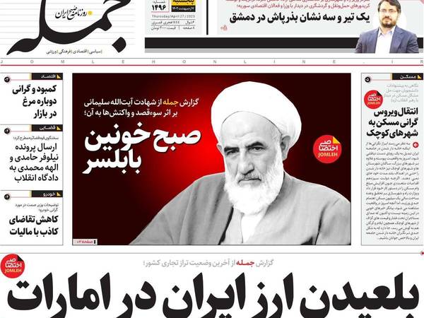 خبر مقتل عباس علي سليماني، الممثل السابق للمرشد الإيراني علي خامنئي في محافظة بلوشستان وعضو مجلس خبراء القيادة، كان له صدى واسع في تغطية الصحف الإيرانية الصادرة اليوم الخميس 27 أبريل (نيسان).