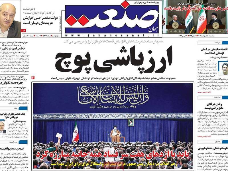 المقال الافتتاحي لصحيفة "جهان صنعت" جاء ردا على حديث خامنئي عن الفساد، حيث أكد كاتب الصحيفة أن "تنين الفساد" هو عبارة عن الفساد الكامن في الاقتصاد الذي تديره الحكومة.