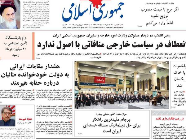 صحيفة "جمهوري إسلامي" المتشددة في مواقفها تجاه حركة طالبان دعت طهران إلى استرجاع السفارة الأفغانية من طالبان بعد أن سلمتها طهران لهم في وقت سابق، وذكرت أن حركة طالبان تحاول توريط إيران في مستنقع "الحرب" داخل أفغانستان.