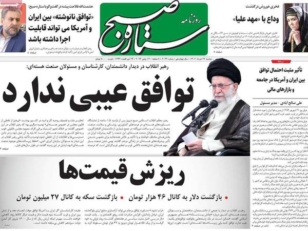 ونقلت صحف أخرى مثل "هم ميهن" كلاما عن الخبراء والمحللين قولهم إن تصريح خامنئي أمس لا يعني بالضرورة موافقته على العودة إلى الاتفاق النووي وإنما الغاية منه التوصل إلى اتفاق غير مكتوب مع الولايات المتحدة الأميركية يجعل كل طرف يتغاضى عن الآخر، بمعنى أن ترفع واشنطن ضمنيا العقوبات عن صادرات إيران من النفط والغاز فيما تبقي إيران نسبة تخصيب اليورانيوم عند 60 في المائة ولا تزيد عليها.