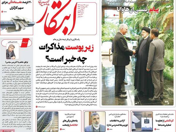 صحيفة "خراسان" الأصولية تطرقت إلى ما نشره موقع "نور نيوز" المقرب من مجلس الأمن القومي الإيراني من تعليق على الأخبار حول محتوى الاتفاق المحتمل بين طهران وواشنطن، وقوله: "لا يمكن التفاؤل بحصول اتفاق سريع بين إيران وأميركا، لكن هذه التقارير تظهر أن البيت الأبيض بدأ يسعى لإظهار إشارات إيجابية وتغيير نهجه خلال الأشهر الماضية".