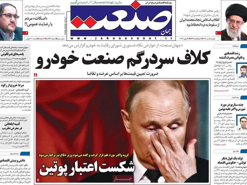 الأزمة السياسية في روسيا والأزمات الاقتصادية في إيران كانت من أبرز الاهتمامات التي غطتها الصحف الإيرانية الصادرة اليوم الاثنين 26 يونيو (حزيران).