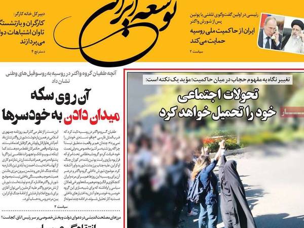 علقت صحيفة "توسعه ايراني" على مظاهر العصيان المدني الذي تشهده إيران منذ شهور، وتحديدا بعد أحداث مهسا أميني، حيث تمردت النساء على قوانين النظام الإيراني المتعلقة بالحجاب الإجباري، ويرفضن بإصرار الخضوع لهذه القوانين، وهو ما أغضب السلطات ودفعها إلى اتخاذ إجراءات ردعية بهدف ترهيب النساء.