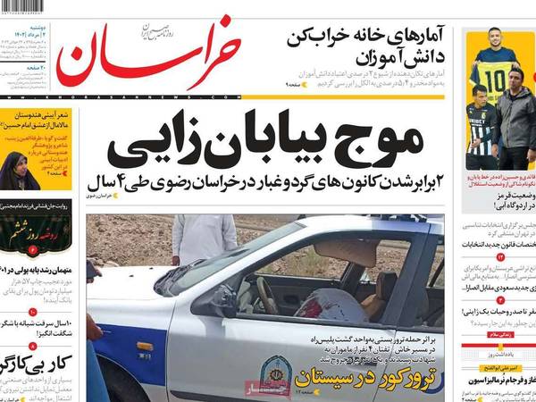 ومن الموضوعات الأخرى التي تناولتها بعض الصحف حادثة هجوم رجل دين على سيدة في إحدى قرى محافظة كيلان، شمالي إيران، وتوجيه ضربات مبرحة لها بعد محاولتها منعه من الاعتداء على سياج منزلها.