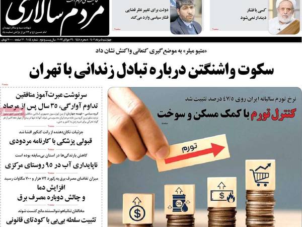 صحيفة "أرمان ملي" انتقدت كلام المسؤولين الحكوميين حول خفض نسبة التضخم، حيث زعم المتحدث باسم الحكومة أمس أن الحكومة استطاعت خفض نسبة التضخم من 60 في المائة إلى 40 في المائة، وقالت الصحيفة إن ذلك يخالف الحقائق على الأرض.