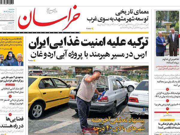في موضوع منفصل تطرقت صحيفة "خراسان" إلى المخاطر التي تهدد إيران في موضوع المياه بعد أن أصبحت الأزمة في شرق البلاد واضحة للعيان، على خلفية انقطاع المياه عن نهر "هلمند" المشترك بين إيران وأفغانستان.