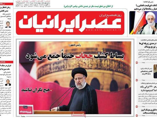 سلط عدد من الصحف الصادرة اليوم، الخميس 10 أغسطس (آب)، الضوء على تصريحات الرئيس الإيراني، إبراهيم رئيسي، أمس بأن حكومته عازمة على القضاء على ظاهرة رفض الحجاب الإجباري، الأمر الذي أثار انتقادات داخلية وخارجية.