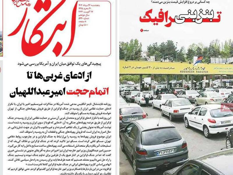 في شأن آخر تحدثت صحيفة "سازندكي" عن "المطالب غير المعلنة" لكل من إيران والولايات المتحدة الأميركية بعد التوصل إلى اتفاق حول السجناء قبل أيام، ولفتت إلى أن من هذه المطالب اشتراط واشنطن امتناع طهران عن إرسال الطائرات المسيرة إلى موسكو لاستخدامها في الحرب على أوكرانيا، فيما طالبت إيران الولايات المتحدة الأميركية بالضغط على الدول الأوروبية لعدم فرض عقوبات جديدة عليها.