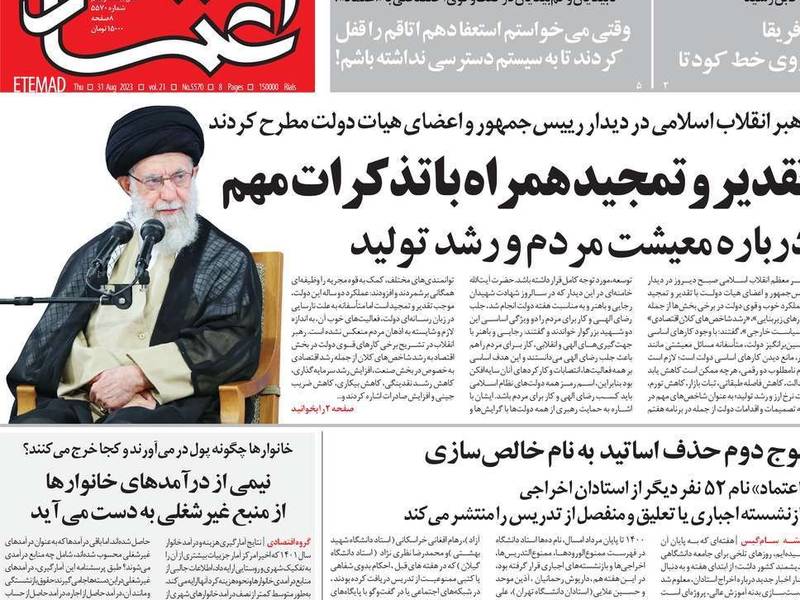 هذه التصريحات والدعم الكامل من خامنئي للحكومة حظيت باهتمام ملحوظ في الصحف الصادرة اليوم، الخميس 31 أغسطس (آب)، لا سيما الصحف المقربة من الحكومة والنظام.