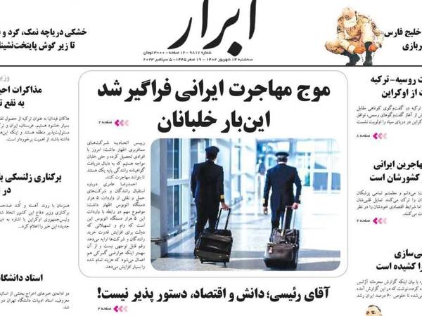 لفتت صحيفة "أبرار" إلى موجات الهجرة عن إيران والتي شملت النخب والدارسين والطلاب والأكاديميين والمهرة، موضحة أن هذه الموجة باتت تمتد لتشمل الطيارين مؤخرا، وأن عددا من الطيارين قدموا طلب للحصول على رخصة قيادة سيارة ثقيلة ليتمكنوا بها من الهجرة وأخذ إقامة لدى بعض الدول الغربية.