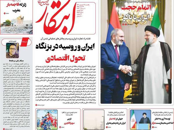 ومن الملفات الأخرى التي غطتها الصحف الصادرة اليوم الأحد موضوع التوتر بين أذربيجان وأرمينيا وموقف إيران من هذه التطورات كما لفتت بعض الصحف مثل "اعتماد" إلى الاتصال الهاتفي بين رئيس وزراء أرمينيا نيكول باشينيان مع الرئيس الإيراني؛ حيث قال باشينيان إن الوضع في أرمينيا على وشك الانفجار، وإن أذربيجان بدأت تحشد قواتها على حدود أرمينيا بهدف شن هجوم جديد لفتح ممر زنغزور الذي يربط بين أراضي أذربيجان وإقليمها نخجوان الذي تفصله عنها الأراضي الأرمينية.