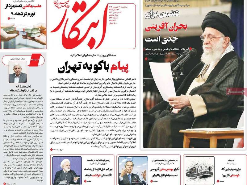 في موضوع منفصل تطرقت بعض الصحف إلى ملف أذربيجان وأرمينيا، وقال كاتب صحيفة "ستاره صبح" إن باكو تخضع لتعليمات تركيا وإسرائيل في ما يتعلق بخطة "عزل إيران جغرافيا" وإضعاف مكانتها الإقليمية والدولية، مؤكدا أن الحكومة الأذربيجانية تجهل تبعات هذه السياسة العدائية تجاه إيران، حسب تعبيره.