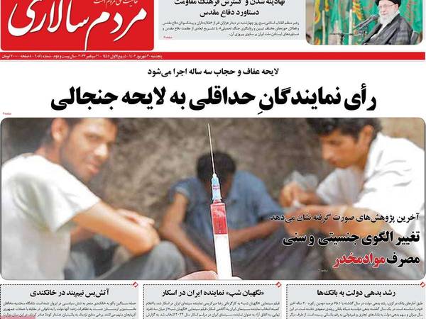 في شأن آخر تناول بعض الصحف مثل "مردم سالاري" قرار البرلمان الإيراني حول قانون الحجاب الإجباري حيث وافق نواب البرلمان الإيراني، الأربعاء 20 سبتمبر (أيلول)، على "التنفيذ التجريبي" لمشروع قانون الحجاب الإجباري الجديد "لمدة 3 سنوات"، والذي تقدمت به اللجنة القانونية والقضائية بالبرلمان، فيما تم إرساله إلى مجلس صيانة الدستور للموافقة عليه والسماح بتنفيذه.