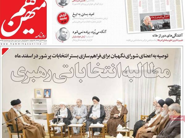 صحيفة "جوان" عنونت في صفحتها الأولى، وكتبت نقلا عن خامنئي: "على الجميع العمل من أجل مشاركة شعبية واسعة في الانتخابات".