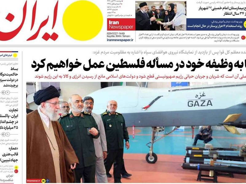 صحف أخرى مثل "كيهان" نقلت جزءا آخر من كلام خامنئي قال فيه إن هزيمة إسرائيل والولايات المتحدة الأميركية في حرب غزة هي واقع لا يمكن إنكاره. واستخدمت صحيفة "جوان" المقربة من الحرس الثوري في مانشيتها: "أميركا أيضا لم تستطع أن تواجه حماس".